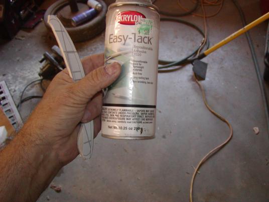 I took "Easy Tack" TM, a contact cement that allows you to pull off your pattern without it sticking to the wood and making a mess, and tacked the pattern to the lamination.