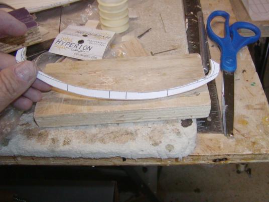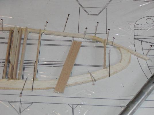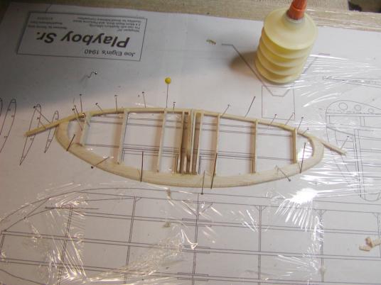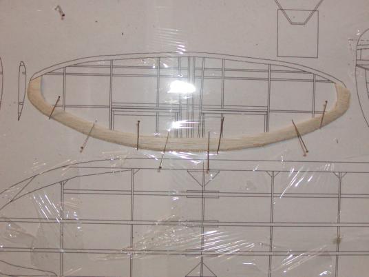 Next I pinned it down to the plans, being careful not to pin through any wood to preclude breaking the piece.